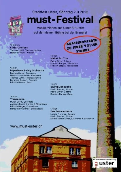Eine kleine Gruppe Musiker und Musikerinnen schloss sich um die Jahrtausendwende privat und motiviert mit der Absicht zusammen, in Uster die Karten neu aufzumischen und Kontakt zu anderen Musikern zu schliessen. Uster hatte gerade den Wakkerpreis für seine Industriebauten bekommen: die Archenova, das Im Lot, um nur zwei zu nennen. Der erste Anlass von must führte das Publikum an drei Sonntagen im Mai hintereinander zu den verschiedenen Siedlungen. Unterwegs wurde das Publikum mit musikalischen Trouvaillen überrascht. Der Andrang junger Eltern mit ihren Kinderwagen, Kollegen und Bekannten, Senioren und Musikliebhaberinnen war so gross, dass die Minikonzerte zwei Mal hintereinander aufgeführt werden mussten, um allen gerecht zu werden…